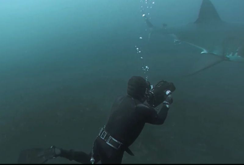 Mergulhador sobreviveu ao ser atacado enquanto filmava tubarões para documentário.