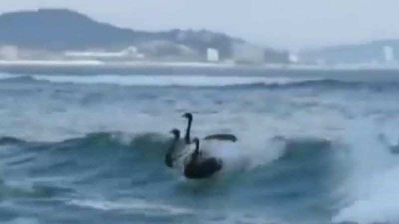 Aí você está curtindo um dia de sol na praia de Gold Coast na Australia, até que vê... Cisnes Negros pegando onda! Você até lembra do flime Cisne Negro, que era o personagem da peça de ballet, mas agora é real, e de fato eles vão do Outside e dropam na marolinha. Confira a imagem: