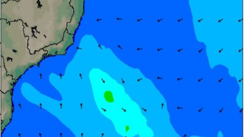 Sábado com ondas subindo até aprox. 2m, e descendo até 1m no domingo. Direção variando entre S e SO